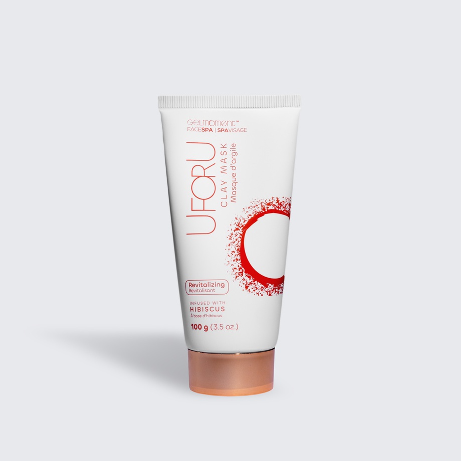 UFORU Revitalizing Clay Mask features Hibiscus extract, a gentle exfoliant that helps unclog pores and control oil production, promoting a younger and smoother looking complexion.